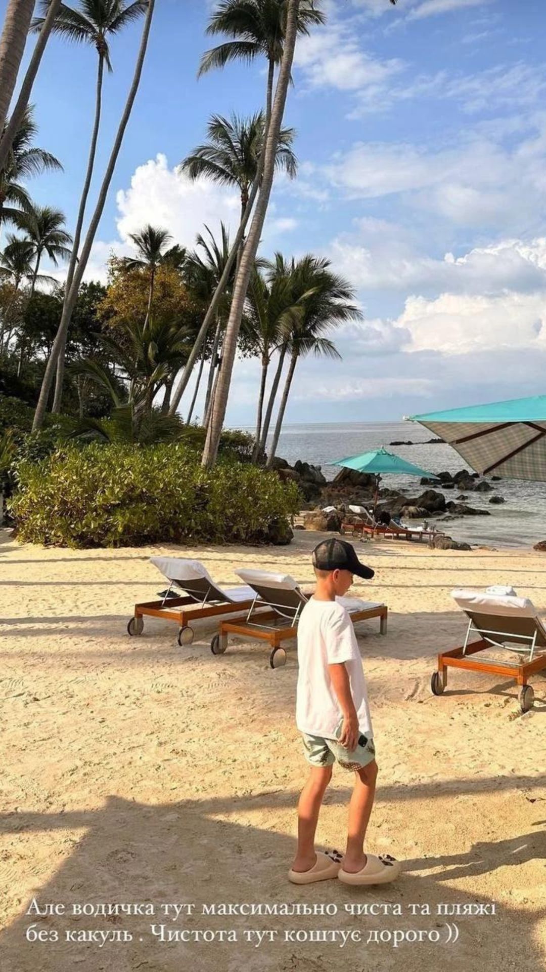 "У мене планувалися тут круті ретрити, але у нашої няні раптово виникли проблеми й ми полетіли самі. І тепер у мене мамський ретрит. Ну нічого – приймаємо. Все ж таки цю подорож я подарувала синові на Новий рік і за гарне навчання", – розповіла акторка.