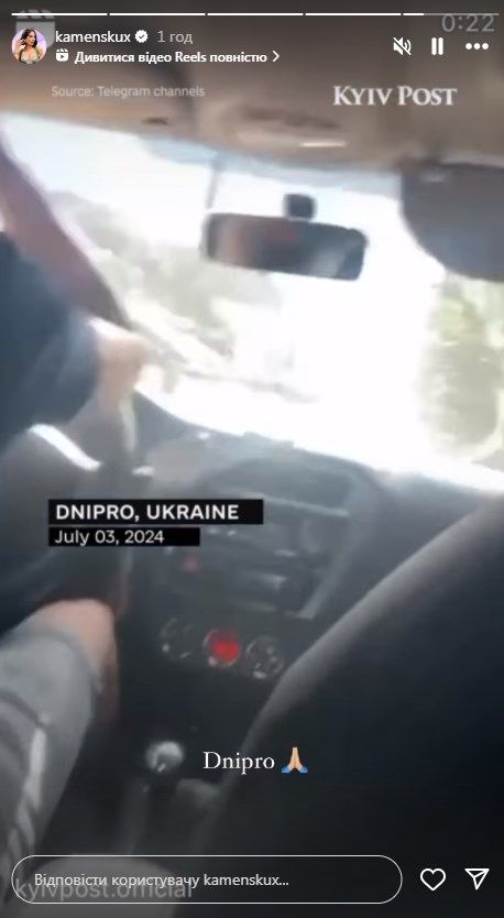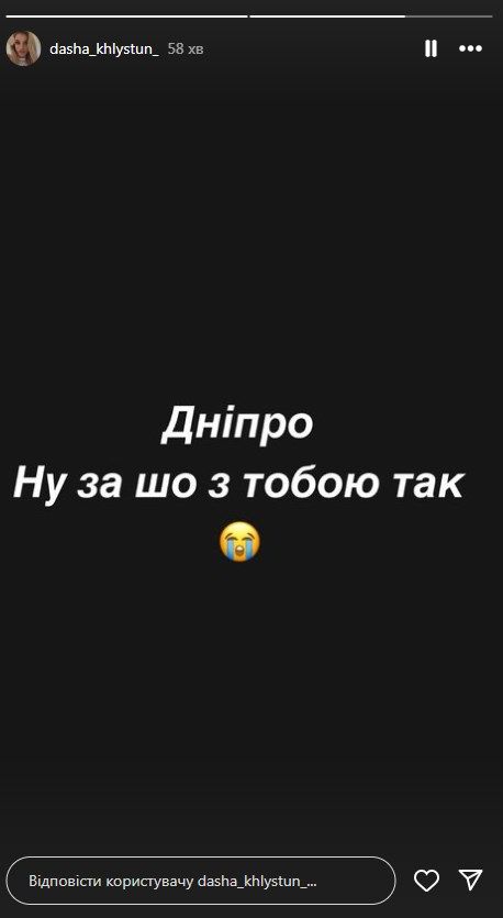 Ілона Гвоздьова відреагувала на обстріл Дніпра / Скриншот з інстаграм-сторіс
