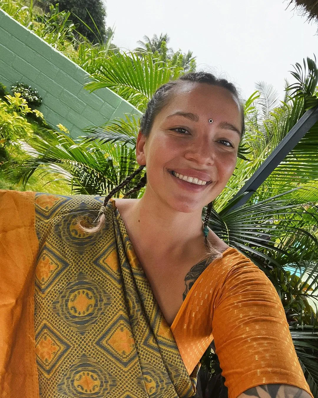 Олена Мозгова поділилась у мережі світлиною доньки в Індії. На знімку дівчина позує в традиційному вбранні – сарі. У цій країні дівчина перебуває з грудня 2023.