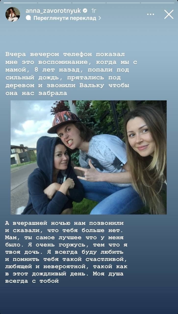 Анна Заворотнюк отреагировала на смерть мамы / Скриншоты из инстаграм-сторис