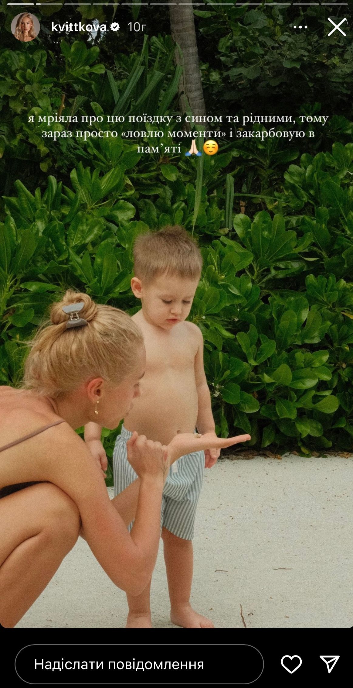 Блоггер рассказала, что сомневалась в том, делиться ли деталями своего отдыха в соцсетях. Однако по просьбе подписчиков все же решила показать их с сыном и родными отпуск. Даша не призналась, где именно отдыхает, однако рассказала, что добиралась в теплую страну трое суток. Квиткова отметила, что, к счастью, ее сын был спокоен во время дороги.