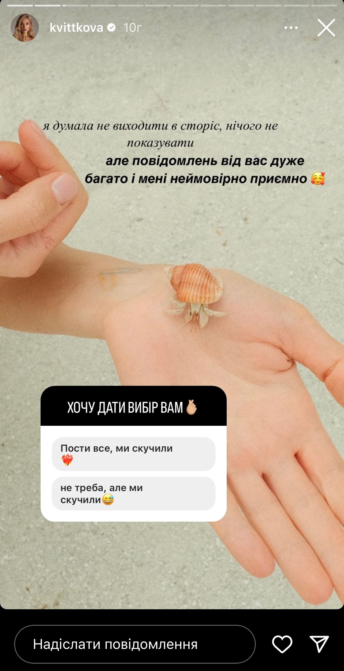 Даша Квиткова уехала в отпуск / Скриншоты из инстаграмм-сторис