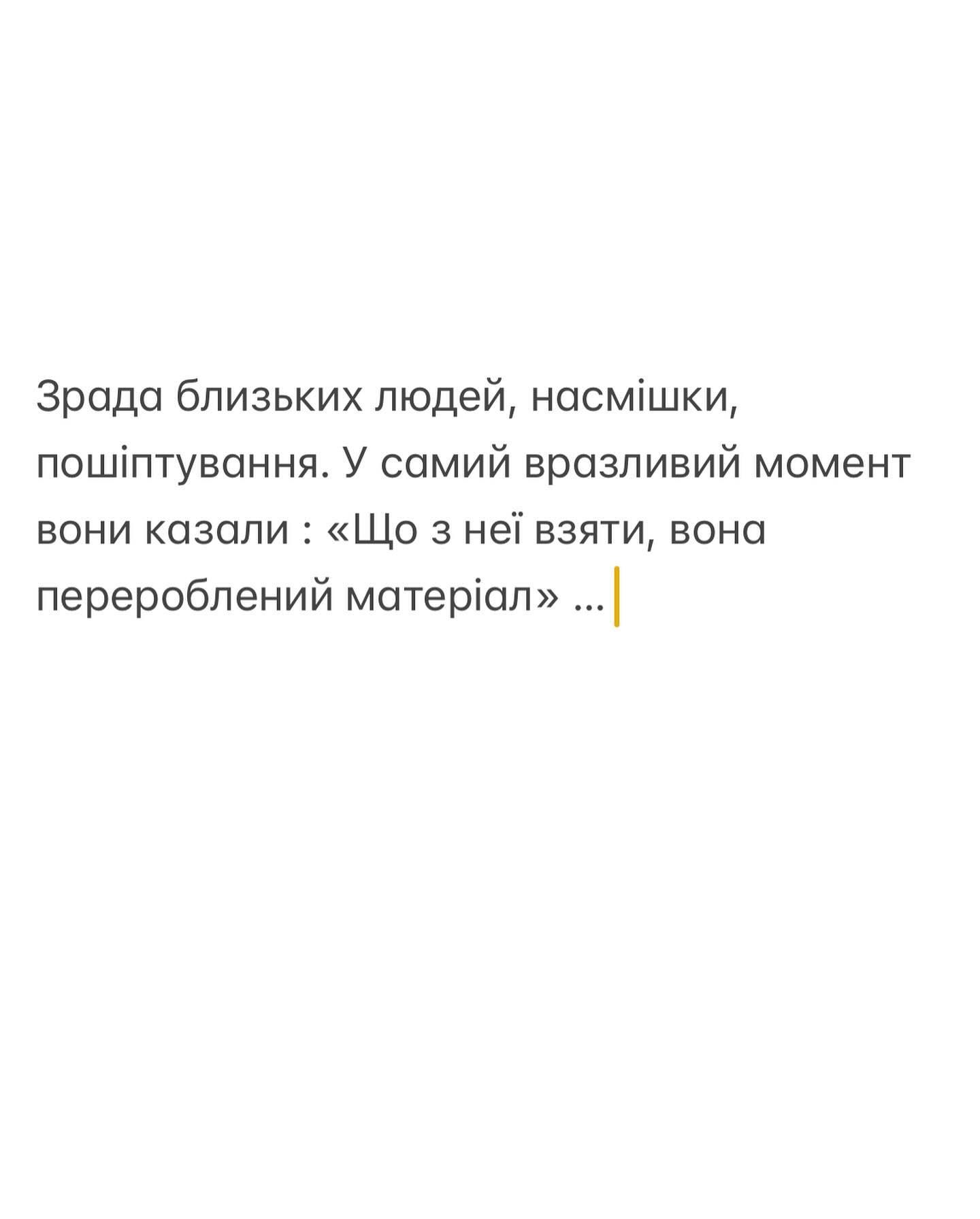 Я полностью потеряла себя, когда он сказал, что ты сможешь все сама. Предательство близких людей, насмешки, перешептывания. В самый уязвимый момент они говорили: "Что с нее взять, она переработанный материал",