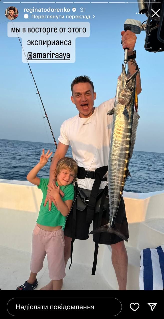 Сейчас телеведущая активно публикует фото и видео отдыха. Она показала, как встречала закат и ездила на рыбалку с мужем и сыном.