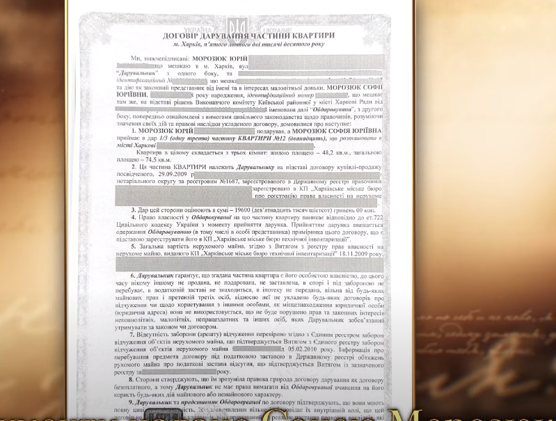Кроме того, стало известно, что 2 июня 2022 года она приобрела квартиру в престижном жилом комплексе в Киеве. Это было до знакомства с Гринкевичем. Также Морозюк владеет 15% долей в квартире своего папы, приобретенной в августе 2022 года. К тому же она имеет треть собственности на квартиру в Харькове, приобретенную в 2010 году во время бракоразводного процесса ее родителей.
