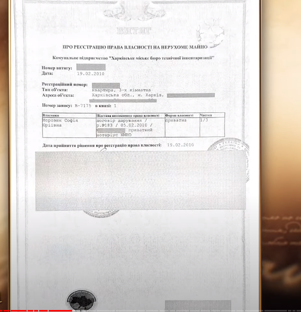 Соня Морозюк показала документы на галерею и квартиры / Скриншоты с видео