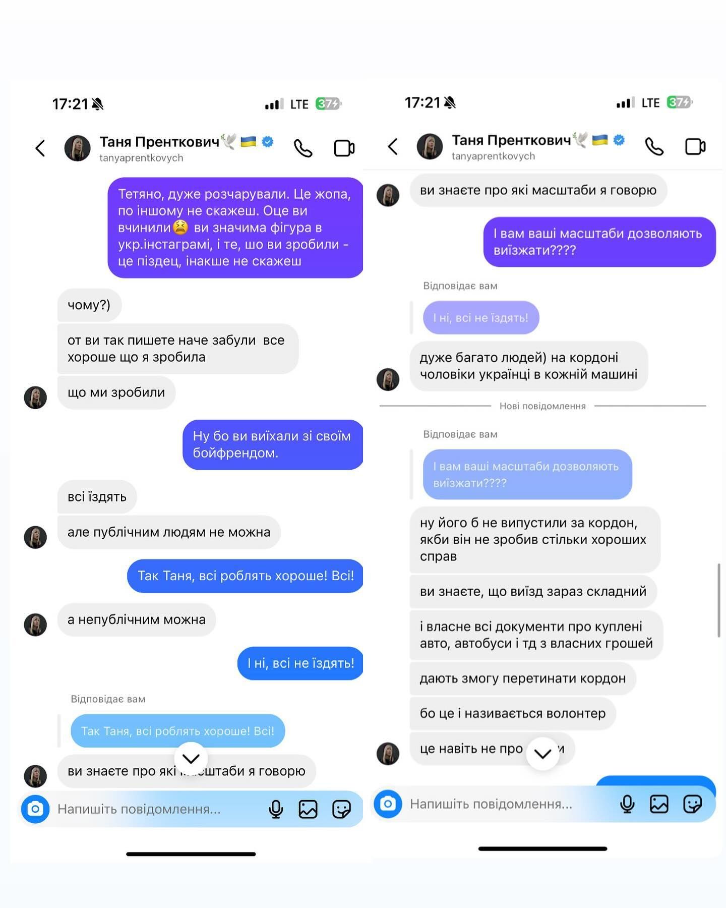 Переписка с Таней Пренткович / Фото с инстаграма Валерии
