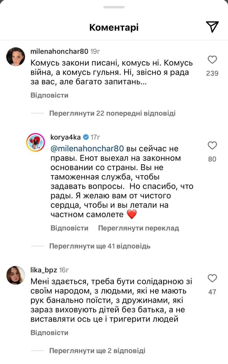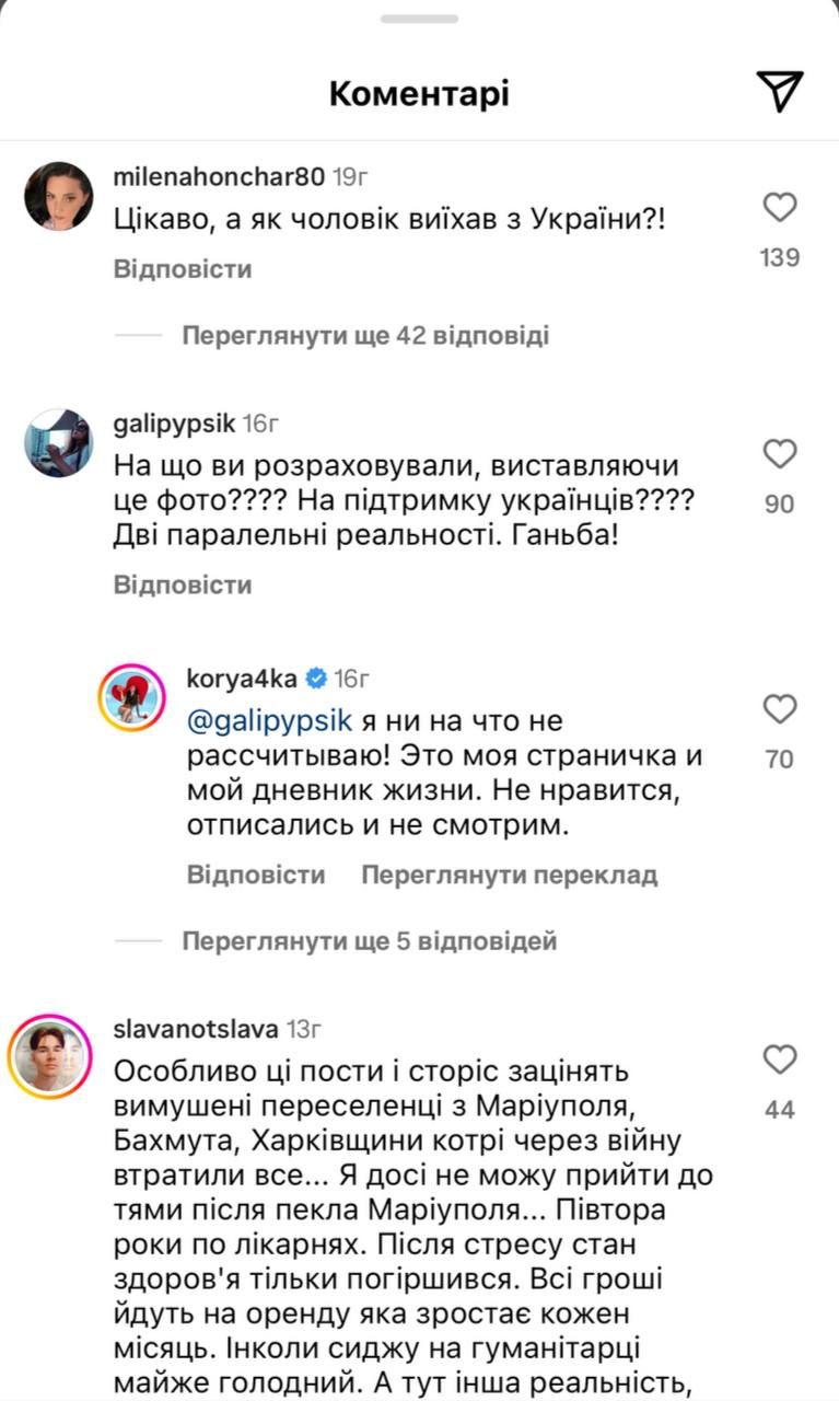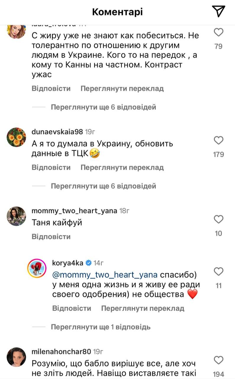 Що пишуть у коментарях / Скриншот з інстаграму Тетяни Коряк
