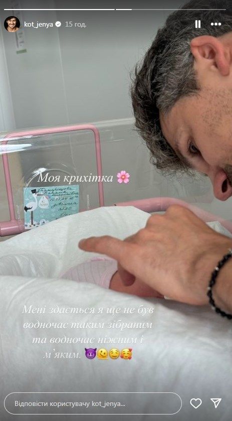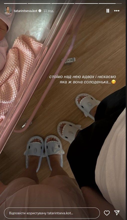 На фото можна побачити, як Женя Кот проводить час з дитиною. Зокрема, є світлини, де він мило дивиться на донечку та тримає її на руках. Також Татарінцева виставила фото, де вони з коханим вдвох спостерігають за дитиною. "Стоїмо над нею і нюхаємо. Яка ж вона солоденька", – додала зіркова матуся.
