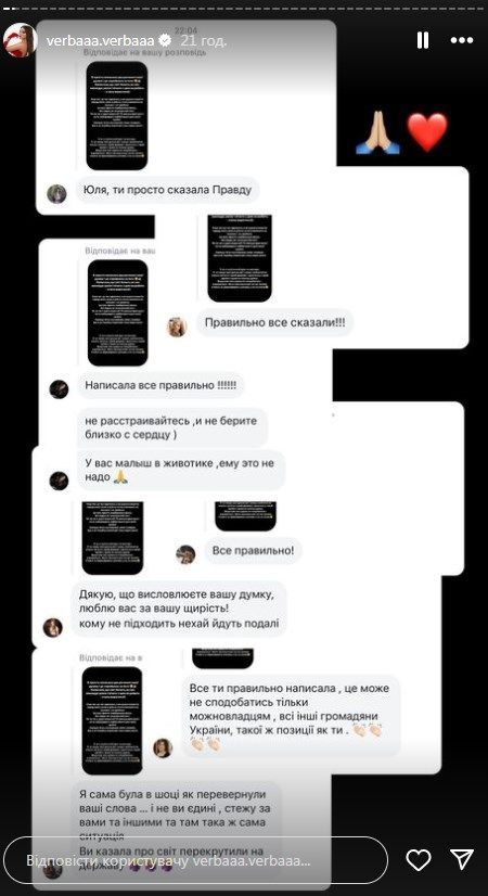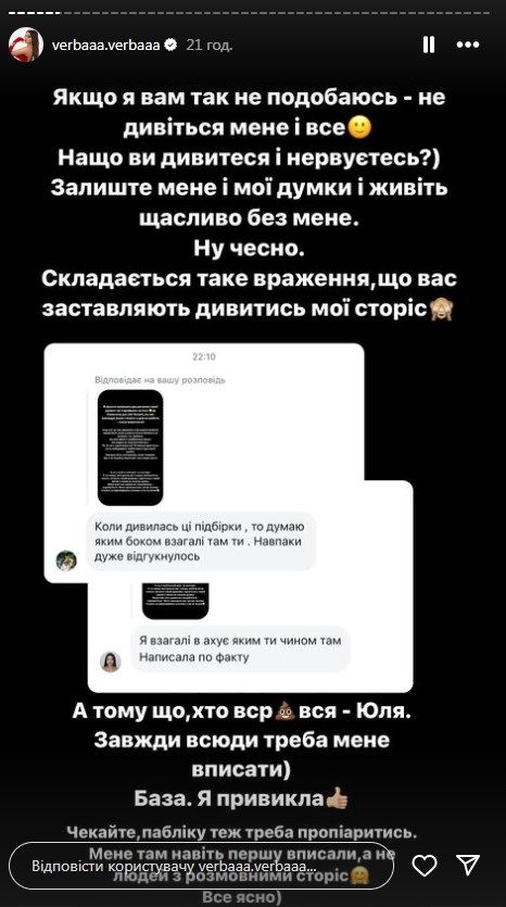 Юля Верба відреагувала на хейт / Скриншоти з інстаграм-сторіс